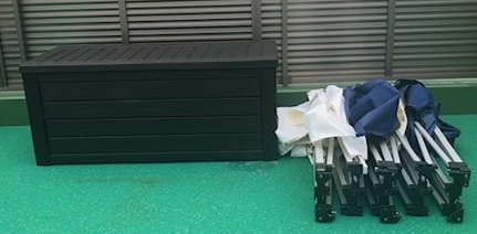 ワンタッチテント2張 テント収納カバー2個 屋外収納ボックス4台